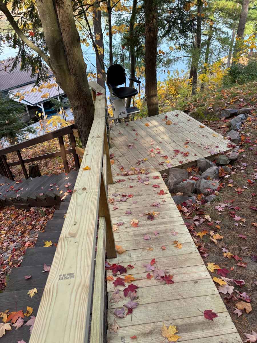 With a price much lower than a tram, the Crest Lake Home Lift provides an extra long track outdoor lift suitable for lake living. If your installation is away from the power grid, the optional solar charger for the included batteries will keep your lift ready to go when you are. (Solar Charger must be placed where it has good view of the sun, not under tree or other shade.)