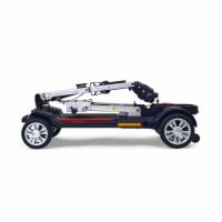 The Buzzaround CarryOn foldable scooter is small in stature and big on fun! This new sporty, super portable scooter will take you where you want to go in comfort and style! It features an infinitely adjustable tiller, full front and rear lighting package, 2 lithium-ion battery packs, included bottle and cane holders, and 300 lb. weight capacity. The heaviest piece is 47.5 lbs. (without seat and batteries) and the height when folded is only 12". This lightweight, folding mobility scooter disassembles easily into a few pieces and is designed to store in the smallest compartments. Pack your dreams and go anywhere with the CarryOn travel scooter!