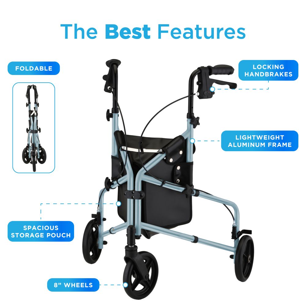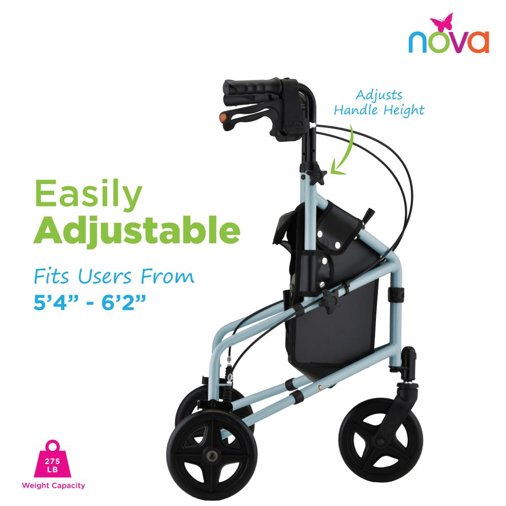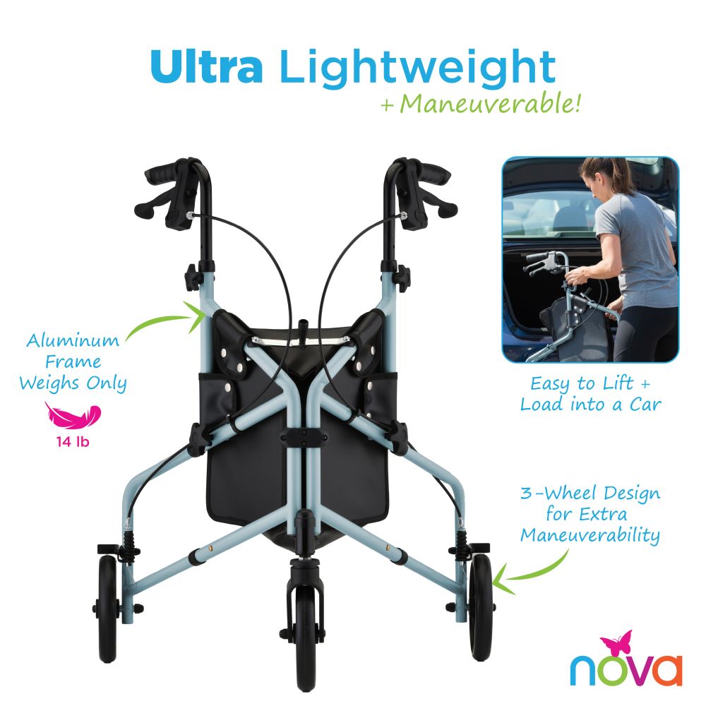 The Active three-wheel rollator is the perfect companion for an active life on the go! Its lightweight, compact frame and three-wheel design make it super maneuverable and perfect for travel.