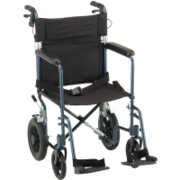 The 20 inch Lightweight Transport Chair has a lightweight aluminum frame and padded upholstery. It is foldable with 12" rear wheels, and has a quick release fold-down back, as well as padded, fixed full-length arms for added comfort. This transport chair has locking rear wheels and includes hand brakes for added safety and control.